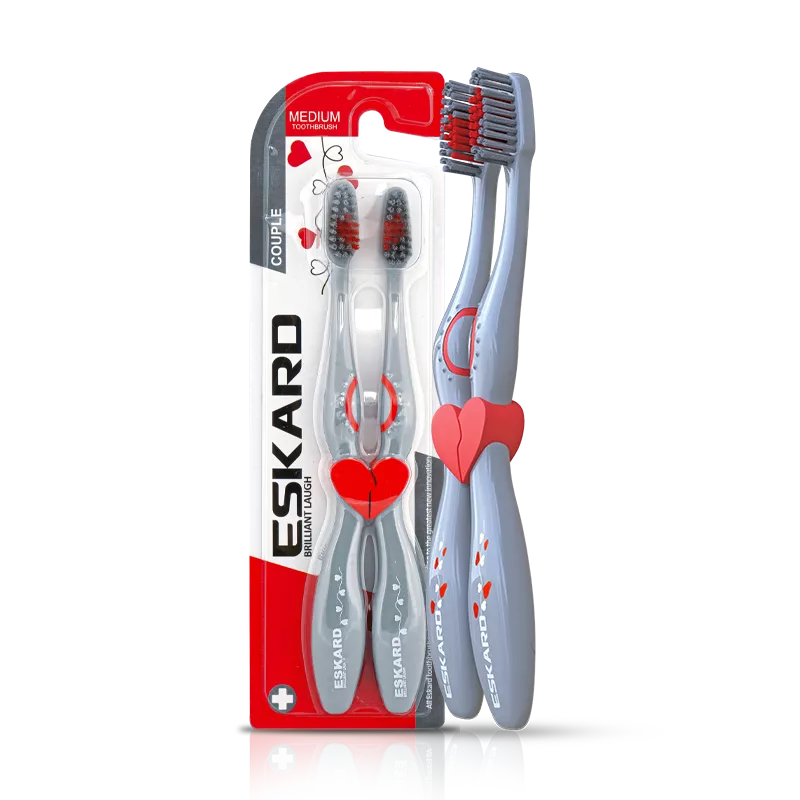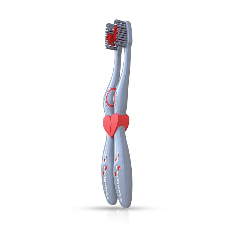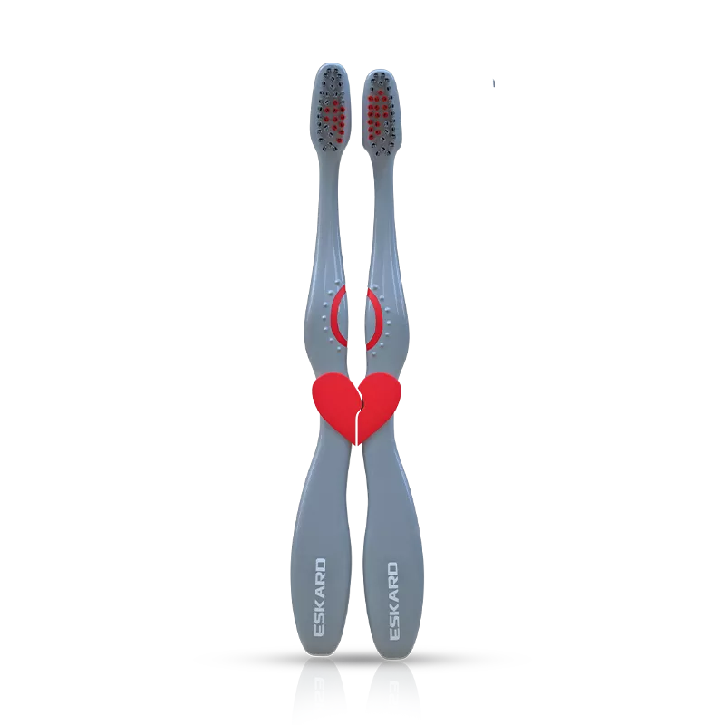 مسواک کاپل بهویژه برای زوجها طراحی شده تا تجربهای مشترک و مؤثر از بهداشت دهان و دندان فراهم کند. طراحی منحصربهفرد دستهها با دو قلب نصفه که کنار هم قلب کامل میشود، نمادی از هماهنگی و ارتباط در مراقبتهای بهداشتی است. - تجربهای هماهنگ و مؤثر برای زوجها طراحی ویژه برای زوجها: