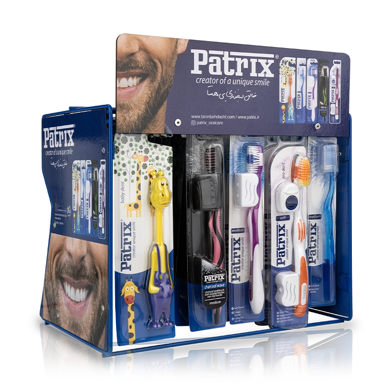 استند یک طبقه پاتریکس با ظرفیت نگهداری ۴۵ مسواک، طراحی منحصر به فرد و کاربردی برای نمایش و نگهداری مسواکها در محیطهای مختلف، دارد. این استند با طراحی مینیمالیستی امکان نمایش تعداد زیادی از محصولات را به طور منظم و به صورت جذاب فراهم میکند و باعث جذب مشتریان می شود.